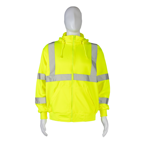 LSWS-C3 ANSI Class 3 High-Vis Lime Zip-Up Sweat Shirt With Detachable Hood