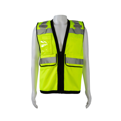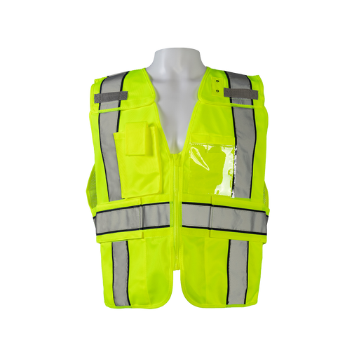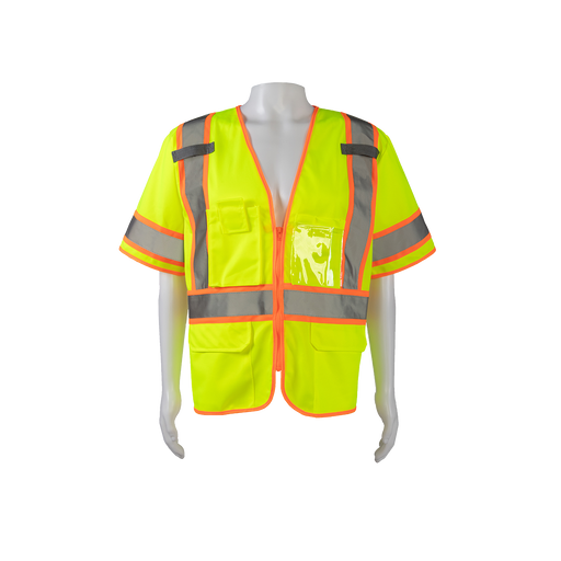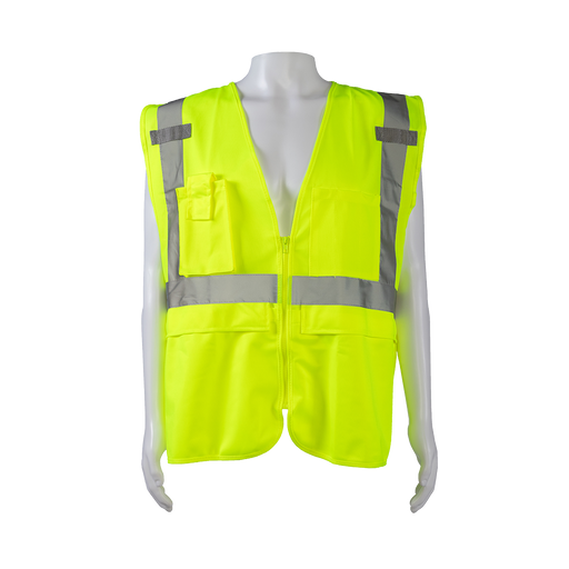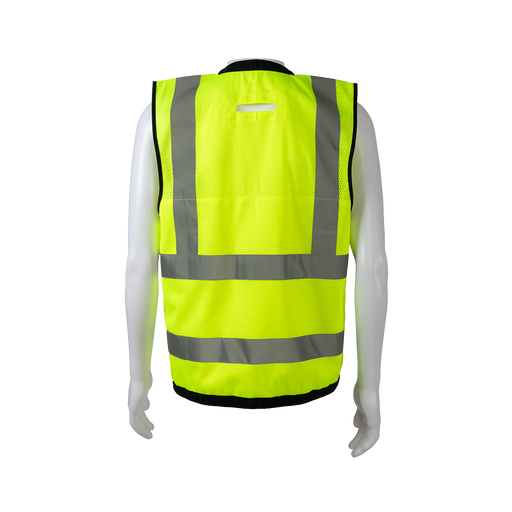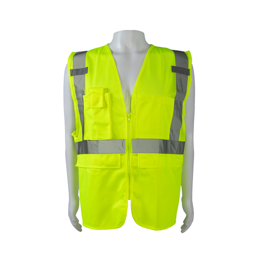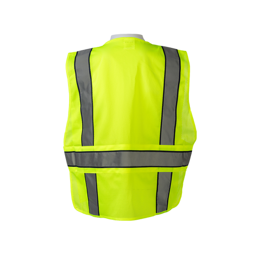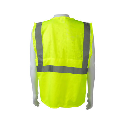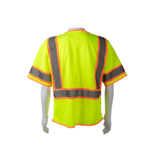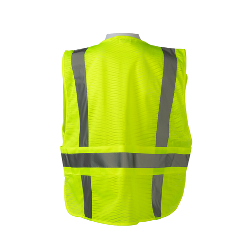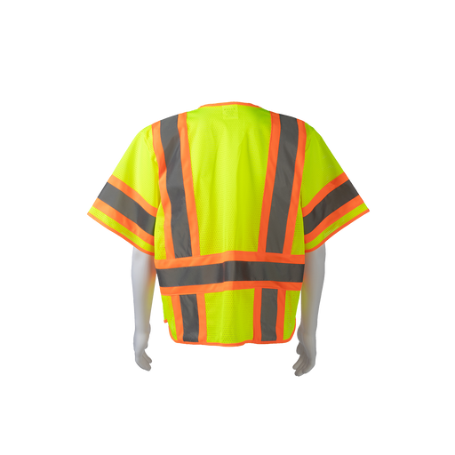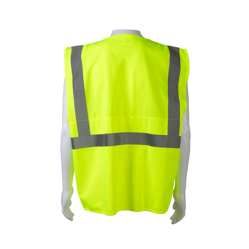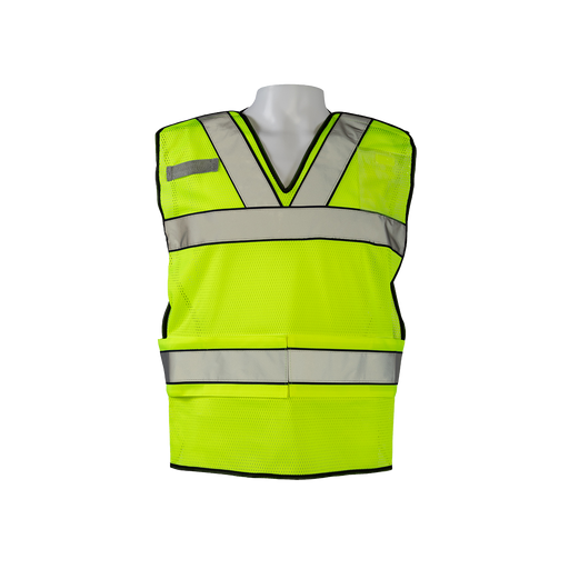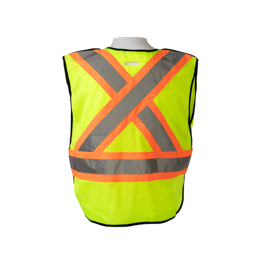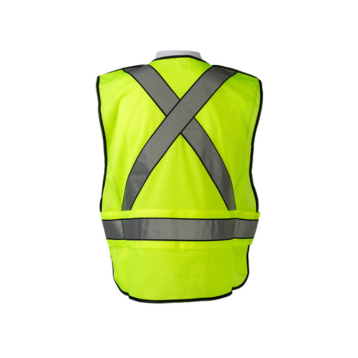 LV2-PSVCSA ANSI & CSA Compliant Public Safety Vest, Lime Solid Front Mesh Back, Reflective “X” On Back