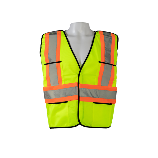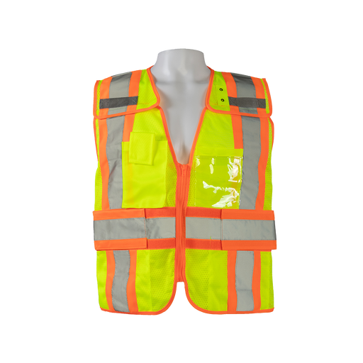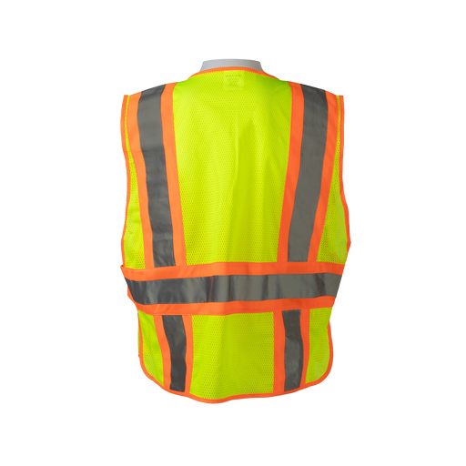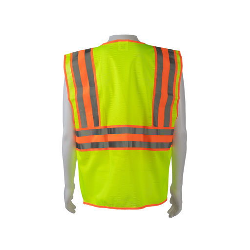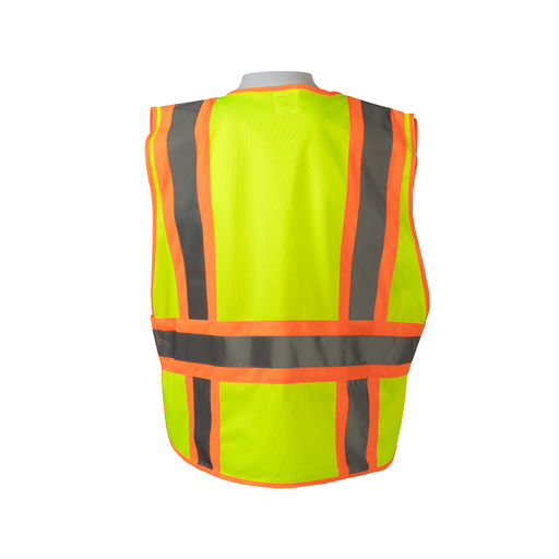 LVM2-PSV ANSI Class 2 Lime Mesh Orange Contrast Two Tone Expandable Breakaway Public Safety Vest
