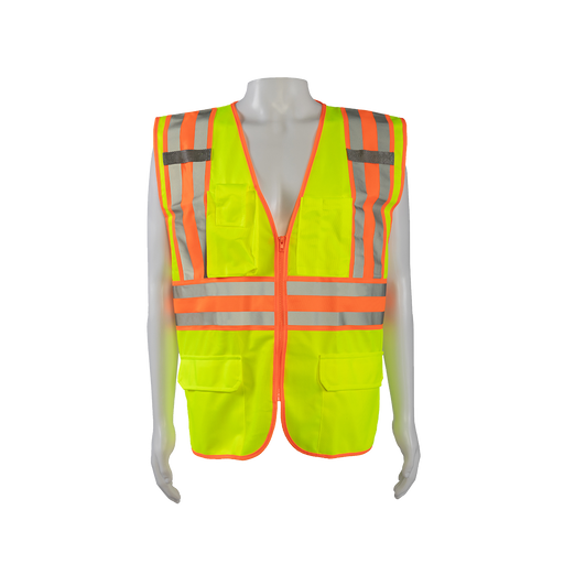 LV3-CB1 LIME SOLID ORANGE CONTRAST ANSI Class 3 Two Tone DOT Surveyors Safety Vest, Deluxe