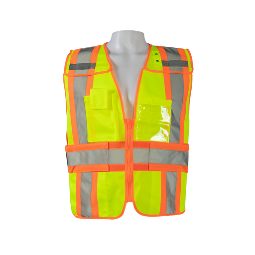 LV2-PSV Lime Solid/Orange Contrast ANSI Class 2 Expandable Breakaway Public Safety Vest