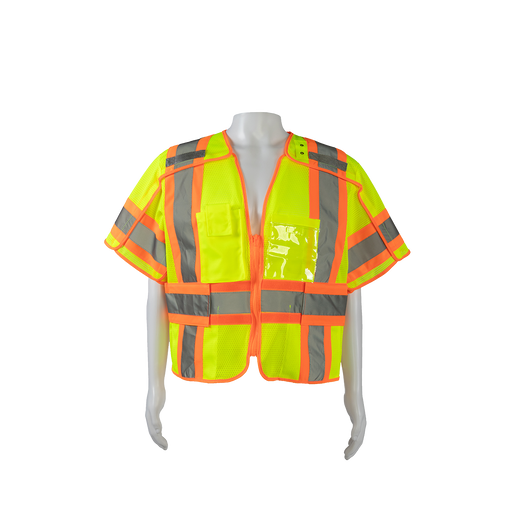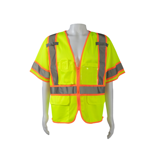 LVM3-CB1 LIME MESH ORANGE CONTRAST ANSI Class 3 Two Tone DOT Surveyors Safety Vest, Deluxe