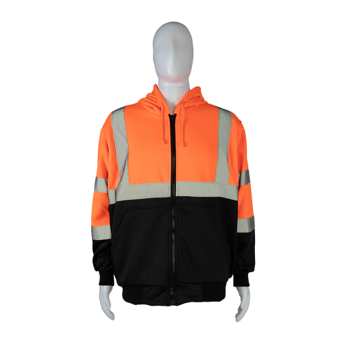 OBHSW-C3 ANSI Class 3 High-Vis Orange/Black Bottom Two Tone 16 OZ. Thermal Lined Zip-Up Hoodie