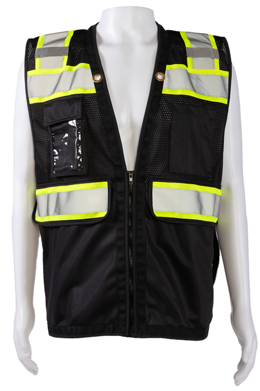 BKVM-S1 Enhanced Visibility Black Mesh Safety Vest With Lime Contrast Binding