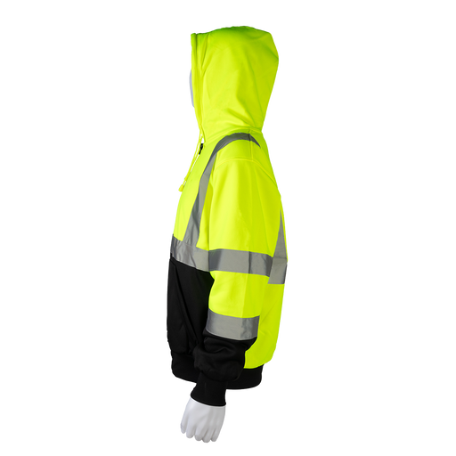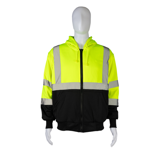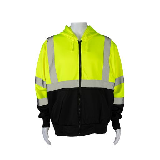 LBHSW-C3 ANSI Class 3 High-Vis Lime & Black Bottom Two Tone 16 OZ. Thermal Lined Zip-Up Hoodie