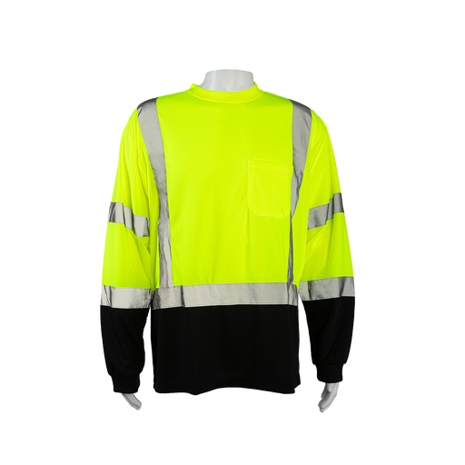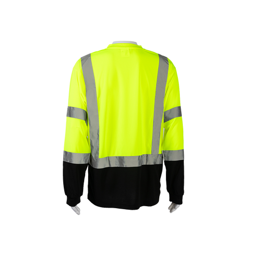 LBTSL3 ANSI Class 3 High-Vis Lime/Black-Bottom Birdseye Mesh Long Sleeve Pocket T-Shirt