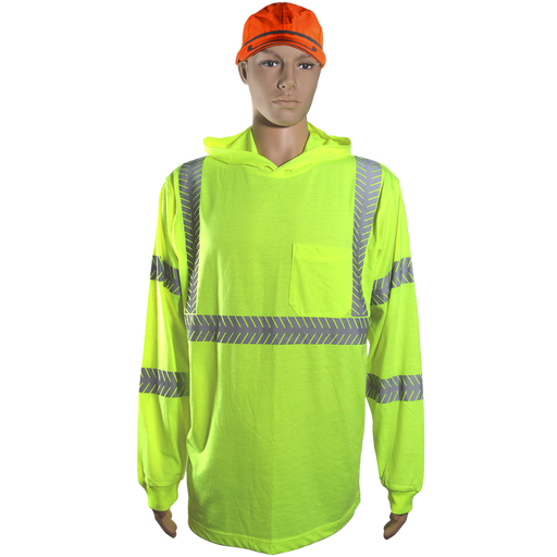 LJHTSL3 ANSI Class 3 Safety Green Reflective Hooded Long Sleeve T-Shirt