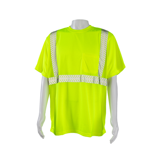 LJTS2 ANSI Class 2 High-Vis Lime Jersey Knit Pocket Short Sleeve T-Shirt