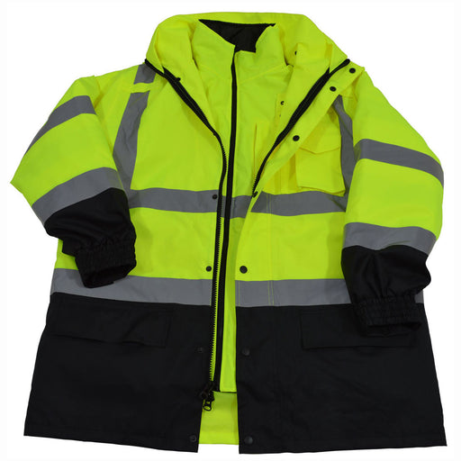 LBPJ6IN1-C3 ANSI Class 3 Lime / Black Two Tone Waterproof 6-IN-1 Jacket & Vest (Two Class 3 Jackets In One)