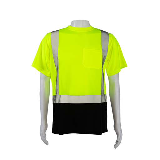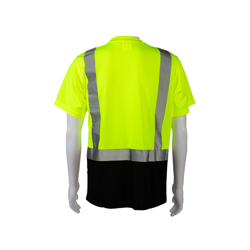 • LBTS2 ANSI Class 2 High-Vis Lime/Black-Bottom Birdseye Mesh Short Sleeve Pocket T-Shirt